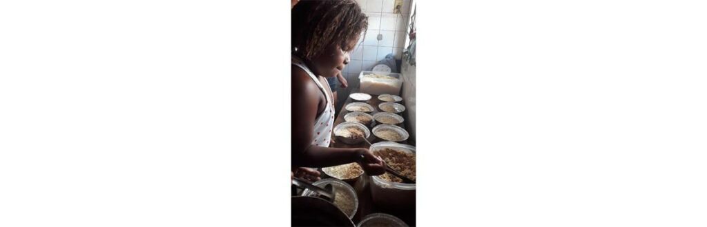 A mãe da menina precisou trabalhar em uma outra festa, no mesmo dia do aniversário da menina, o prato era: feijoada. Luciana aproveitou para conversar com a dona da festa que topou doar o que sobrasse de feijoada para as marmitas.