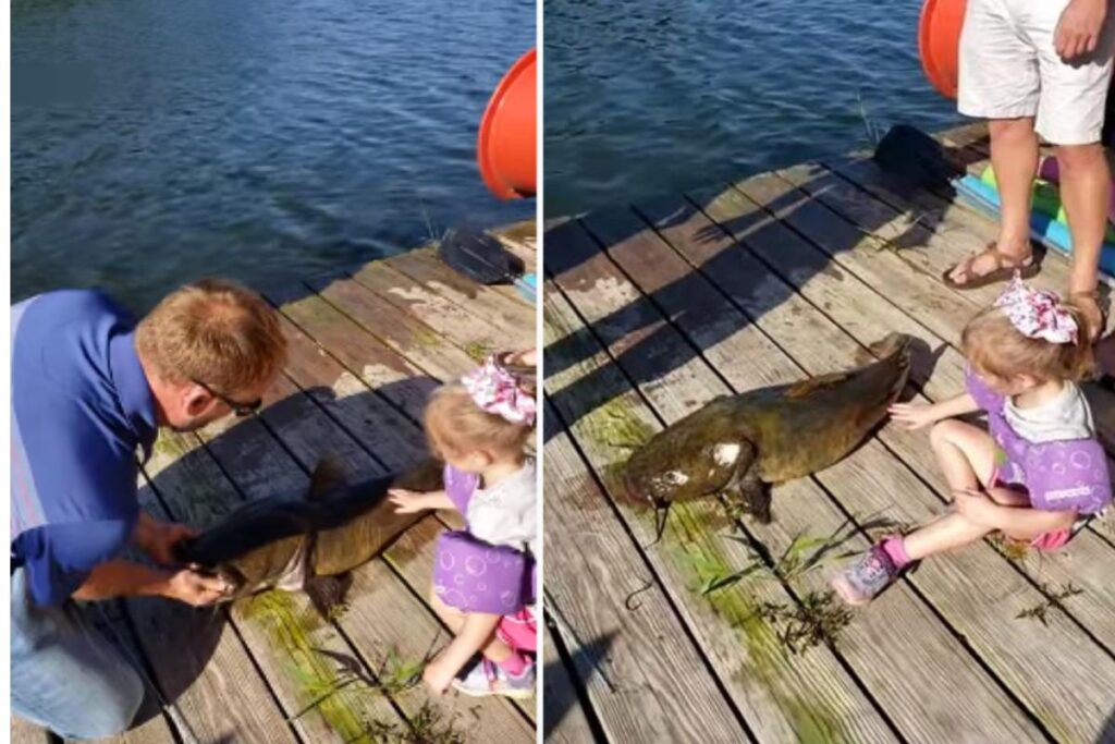 Josie, de quatro anos, teve a ajuda do pai para pescar um peixe com uma vara bem pequena. Porém, a menina acabou pegando um peixe bem maior do que ela, mesmo com a vara de pesca pequena! O caso aconteceu no Illinois, nos Estados Unidos.