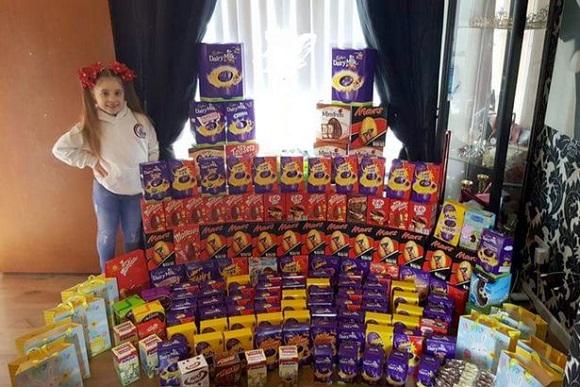 Jasmine arrecada ovos de Páscoa para doar para crianças doentes (Foto: Reprodução/Mirror/arquivo pessoal)