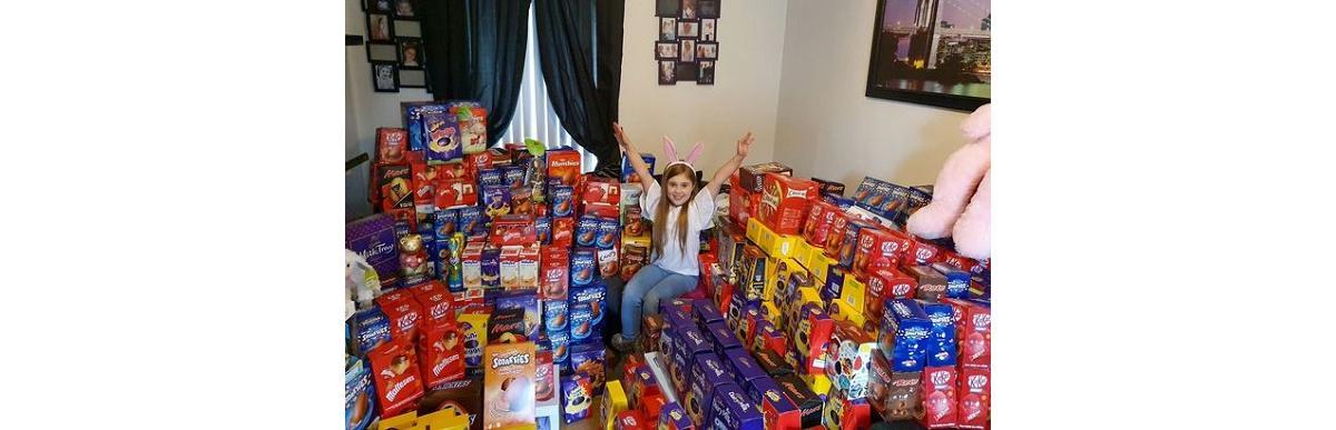 Jasmine Parker é uma irlandesa de 9 anos que arrecadou 650 ovos de chocolate para distribuir para crianças doentes na Páscoa. Todo ano, a menina decide animar o feriado de crianças que tem sua idade ou menos que estão no hospital na data.