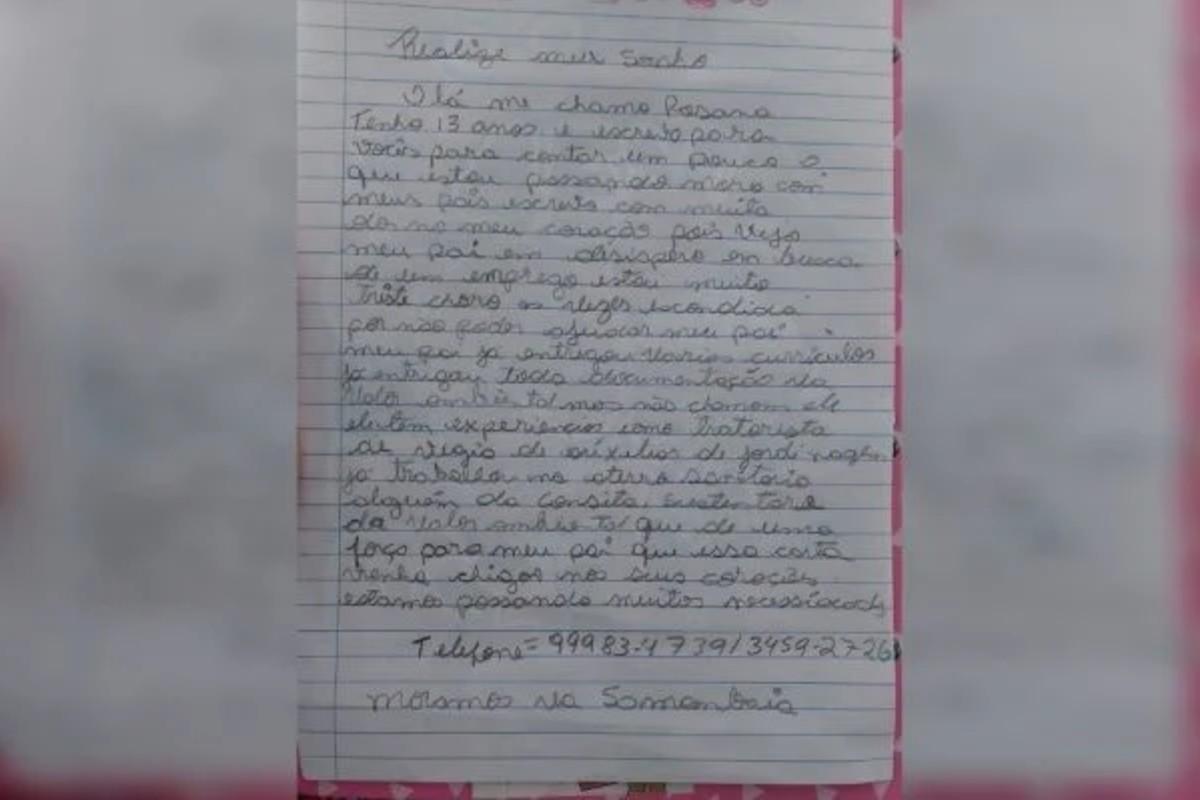 Uma carta viralizou nos grupos de WhatsApp e redes sociais por conta da mensagem nela. O texto foi escrito por Rosana dos Santos, filha de José Ribamar. Com o pai desempregado, ela resolveu fazer um pedido “formal”.