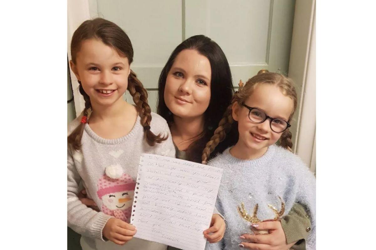 Por conta disso, a menina escreveu uma carta dizendo o tanto que isso foi prejudicial. “Para o homem que bebeu álcool naquela noite. Quando você bebeu álcool e bateu no nosso carro, quase matou minha mãe! Ela teve que ir ao hospital e saiu sangue da sua cabeça. ‘Então, por favor, nunca faça isso de novo”, disse.