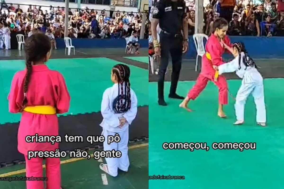 Menina ganha luta contra adversária mais alta que ela e vídeo viraliza nas redes sociais (Foto: reprodução/Instagram/@asagadofaixabranca)