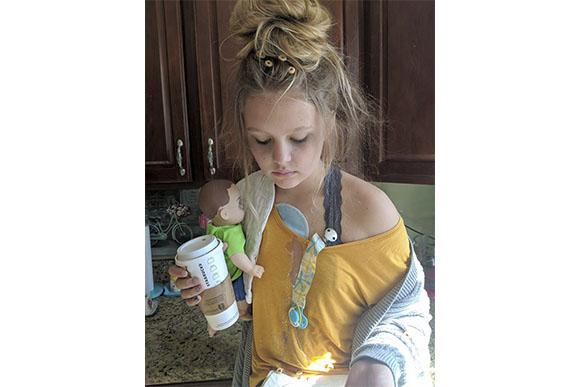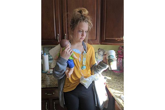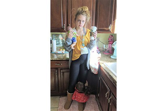Jillian Schnerch tem 13 anos, mora no Novo México e é a 4° em uma família com 9 crianças. Segundo a mãe, Lindsay Hartsock, ela é a que mais ajuda na hora de cuidar dos irmãos e sente na pele o que é o cansaço de uma mãe e irmã. Foi esse sentimento que inspirou a jovem na noite de Halloween, quarta-feira (31), quando ela criou a fantasia de “mãe cansada.”