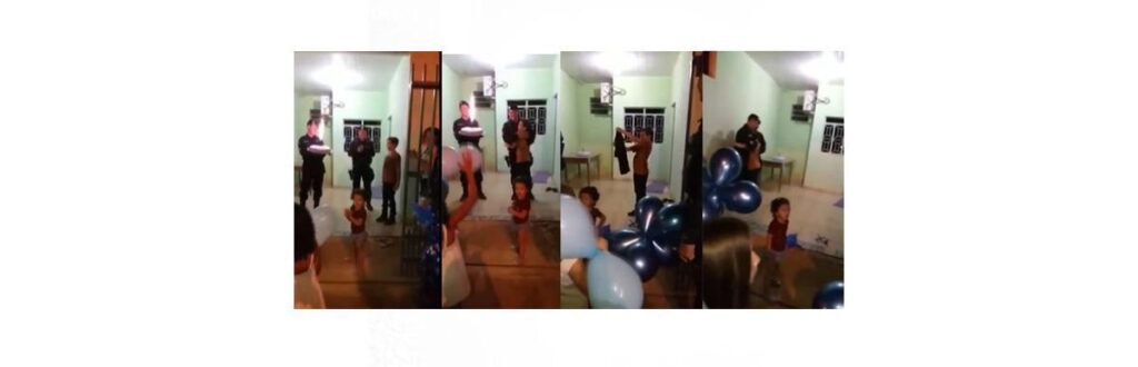 No dia do aniversário, a mãe fechou as cortinas e quando as viaturas chegaram, Matheus perguntou o que estava acontecendo, Tânia pediu para ele ir ao portão.