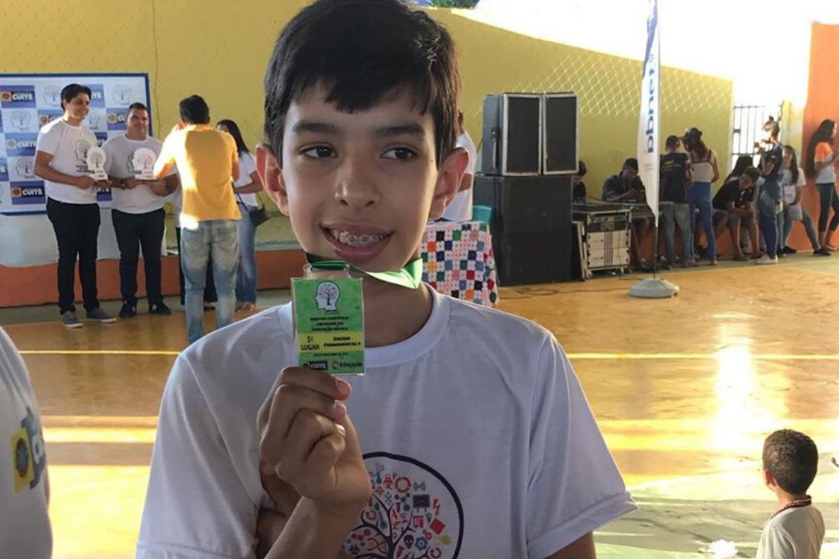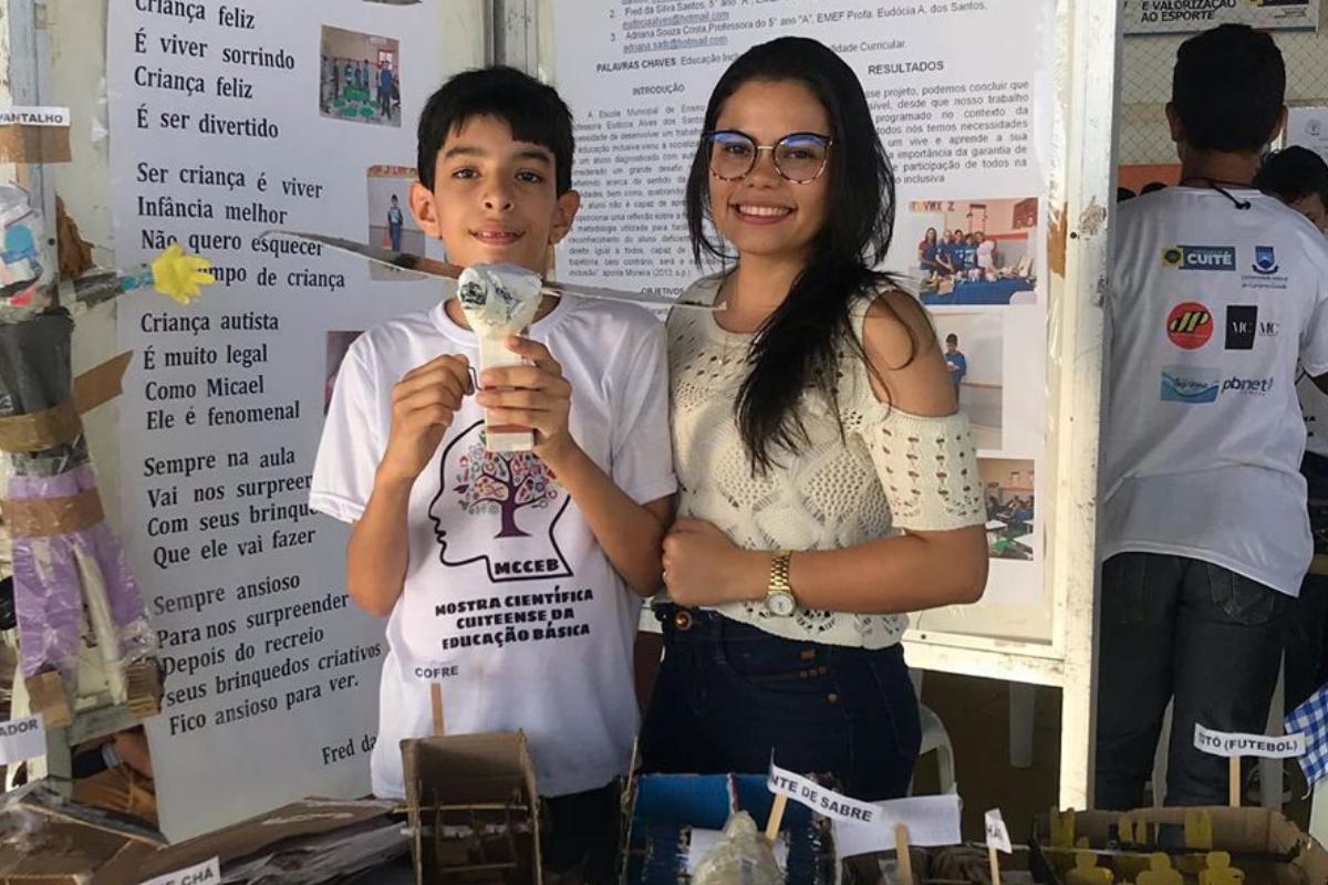 Em Cuité, na Paraíba, Micael Naason, de 11 anos, ganhou a mostra cientifica da rede municipal de ensino. O menino, que tem autismo, cria objetos usando materiais descartáveis como papelão, plástico, papel, entre outros.