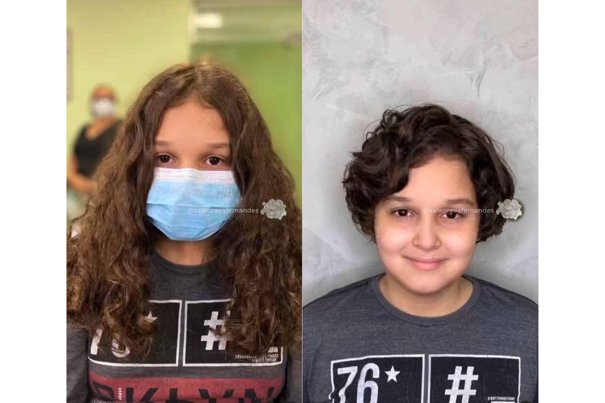Bruno, de 12 anos, não pensou duas vezes em ajudar uma amiga da mãe no tratamento contra o câncer, e doou o cabelo. O garoto havia ficado 2 anos sem cortar o cabelo, e espontaneamente decidiu doá-lo. A mãe, Antoniana Frota, fez questão de registrar o momento e publicar nas redes sociais na última terça-feira.
