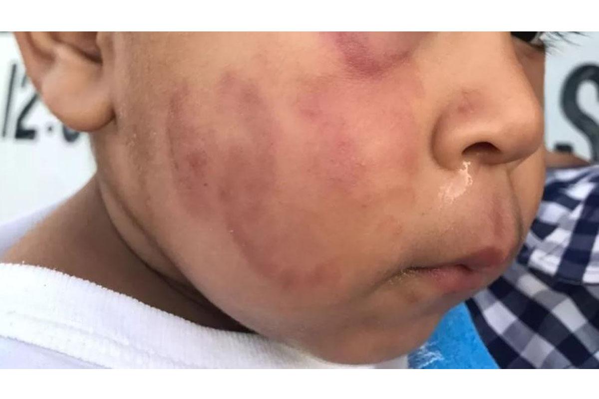A criança de apenas um ano voltou para casa cheia de mordidas e com o olho roxo (Foto: Reprodução/Facebook Tocantins Alerta Notícia)