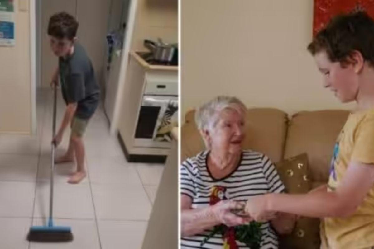 O garoto decidiu ajudar os bisavós quando ele tinha apenas 8 anos e os chama carinhosamente de “papai” e “Ninny”. A aposentada relatou que ele concilia a vida escolar com uma lista de tarefas que vão desde a limpeza da casa, compras de mercado, correio, entre outras coisas.