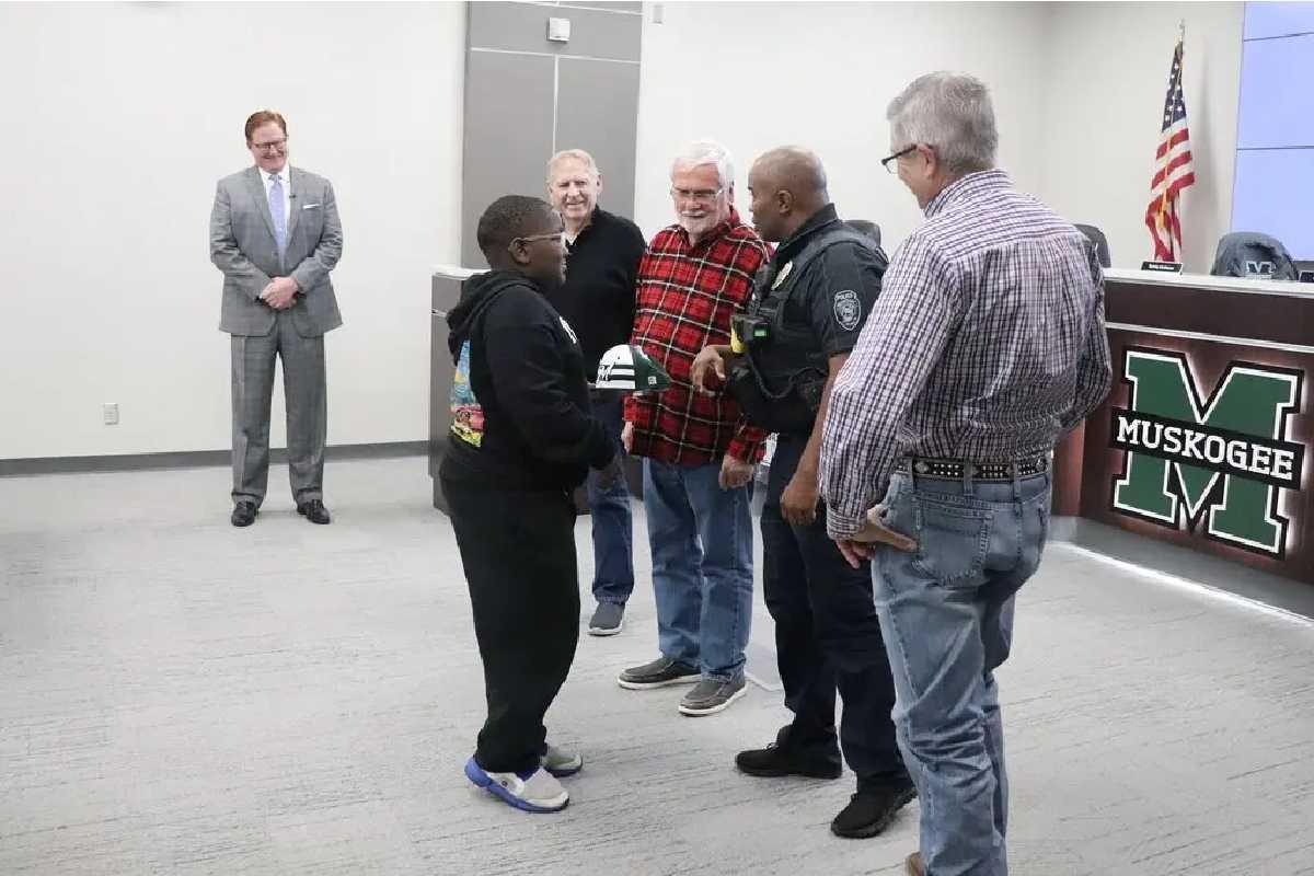 Depois dos feitos, no dia 15 de dezembro, o departamento de polícia de Muskogee e gabinete do xerife presenteou o menino com um certificado, nele o menino foi nomeado como membro honorário.