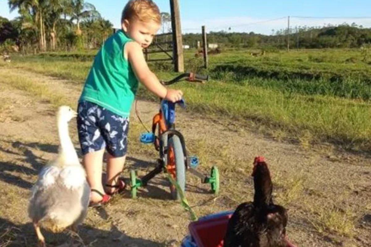 Um menino, de 2 anos, fez sucesso nas redes sociais ao compartilhar vídeos com o seu melhor amigo, um galo chamado Tatá. Heitor que é de Joinville, no Norte de Santa Catarina, e o animal são inseparáveis, andam de bicicleta juntos, brincam no sofá, passeiam e até tomam banho.