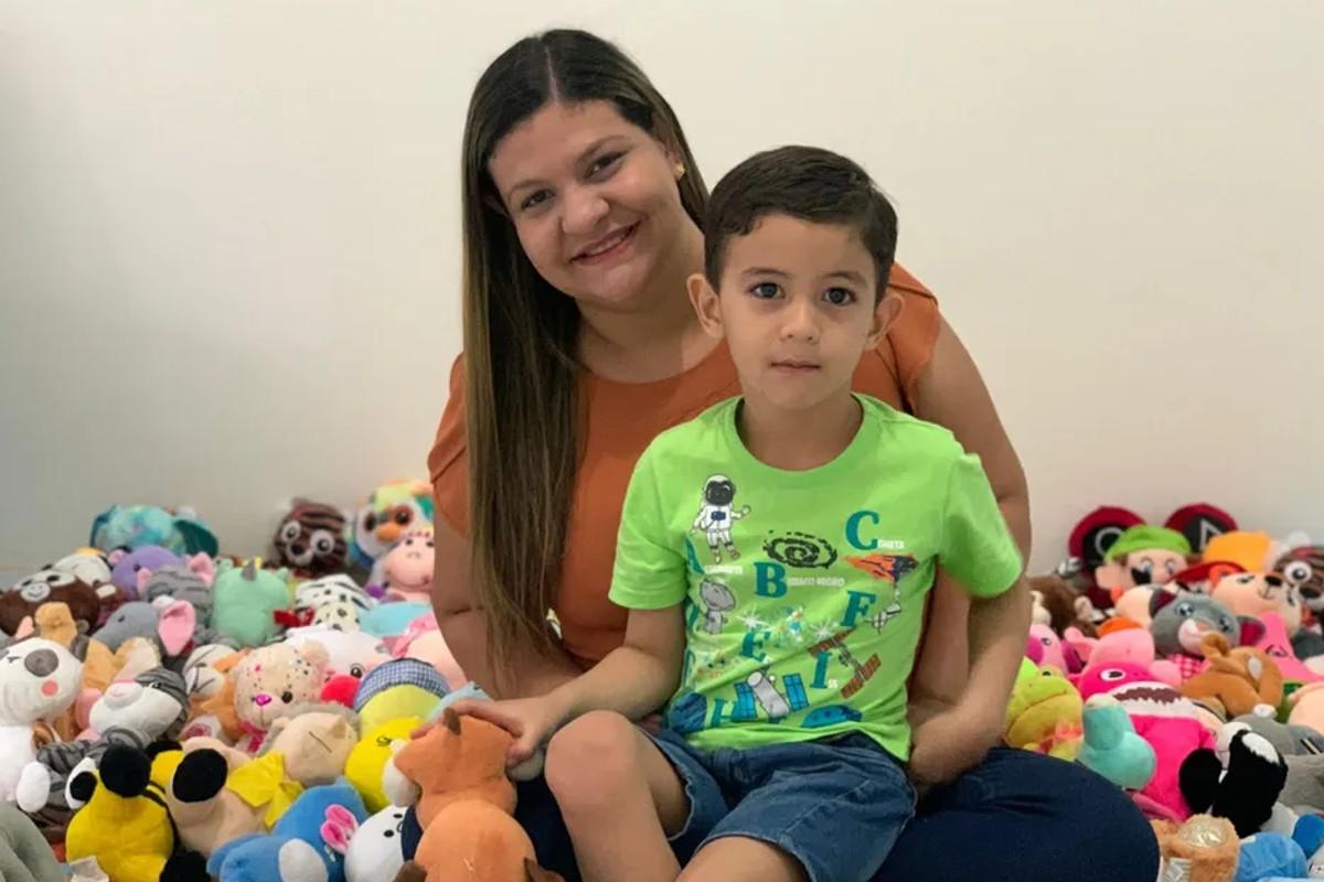 Garoto tem coleção de bichos de pelúcia (Foto: Reprodução/ G1)