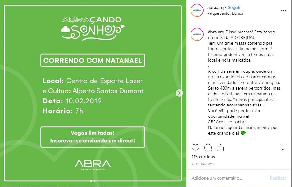 Em entrevista ao Razões para Acreditar, Eline Letícia, voluntária do ABRA, disse que a corrida foi dividida em 2 momentos. “O primeiro foi Natanael correndo à frente com o guia, e todos os participantes acompanhando e incentivando atrás. O segundo foi a experiência com os olhos vendados. Nos dividimos em duplas, onde um ficou vendado e outro guiando para sentir um pouco a ausência da visão e a necessidade de confiar no guia, depois trocamos as posições”, ela explicou.