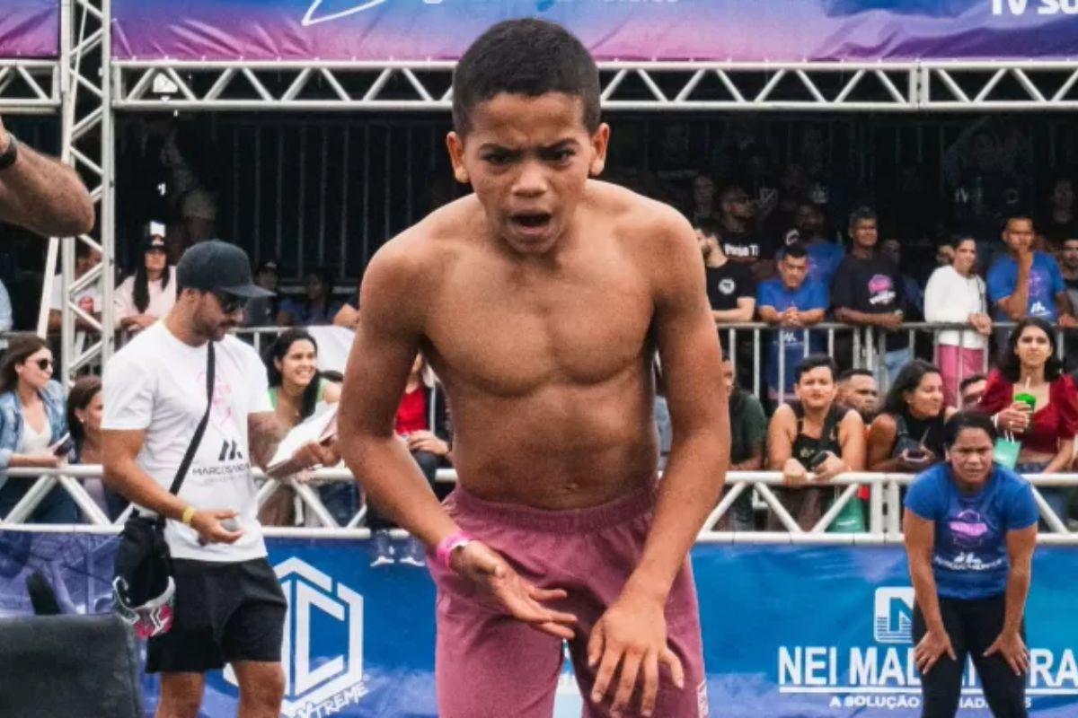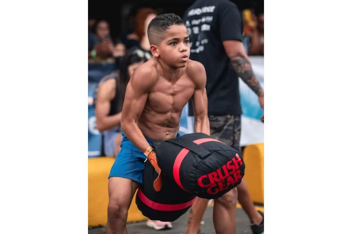 Cauzinho Neto, de apenas 12 anos, é um menino que se interessou pelo crossfit desde cedo por conta do seu pai, Carlos Pitanga Filho, que levava o filho aos treinos para que ele não ficasse em casa sozinho. Hoje o menino já levanta 92kg nos treinos, quase o triplo de seu peso.