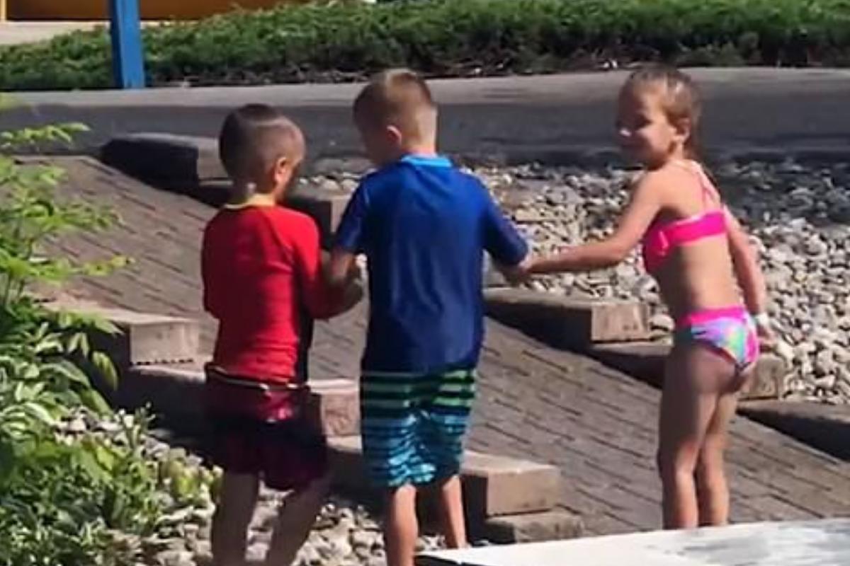 Foi então que no vídeo é possível reparar que os amigos Raya e Kane, de cinco anos, estão de mão dadas com Jeffrey quando os músculos da sua perna começaram a afetar os movimentos dele. Após perceberem que o amigo estava com dificuldades para andar, os meninos voltaram para o quiosque onde estavam os seus pais que juntos passaram a tarde toda, sem se desgrudarem.