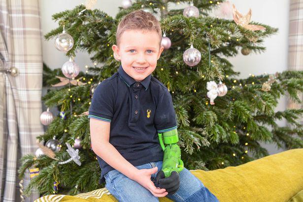 A prótese, que é supermoderna, fica presa no antebraço dele e tem articulação no cotovelo. Para completar, o braço é verde e tem o tema do herói Hulk.“Ele ainda está se acostumando, mas é ótimo, estamos pensando que o Natal será incrível e ele vai conseguir abrir seus presentes com as duas mãos”, disse a mãe em entrevista ao Mirror.