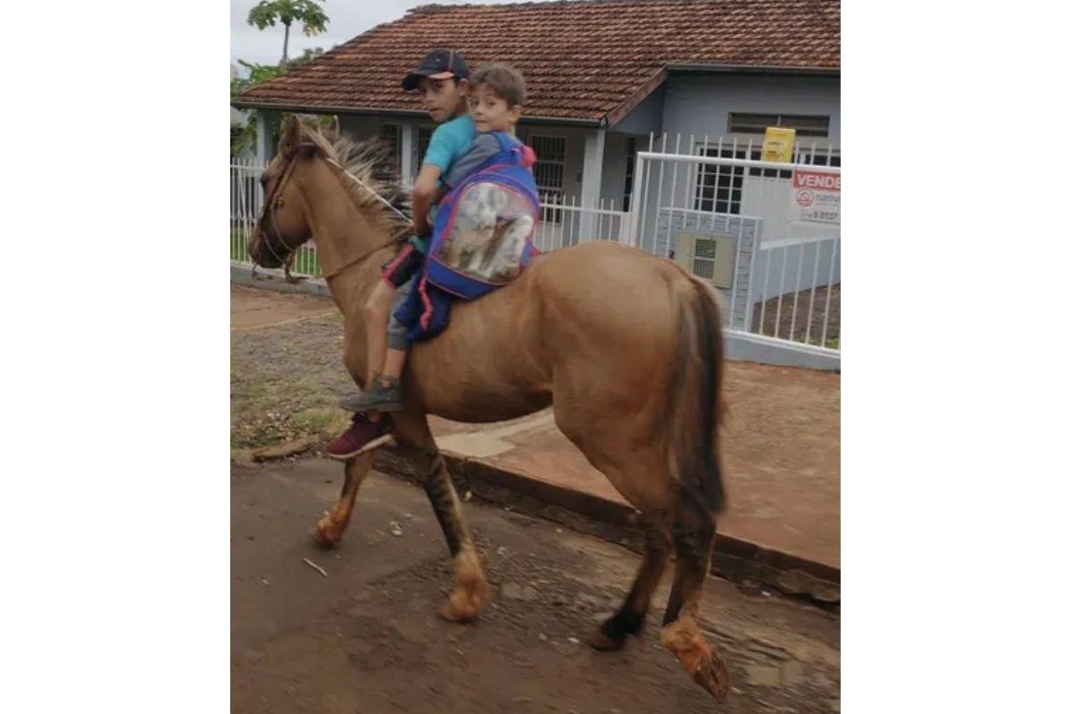 Vídeo: criança vai para escola de cavalo e mãe descobre situação inusitada pela internet