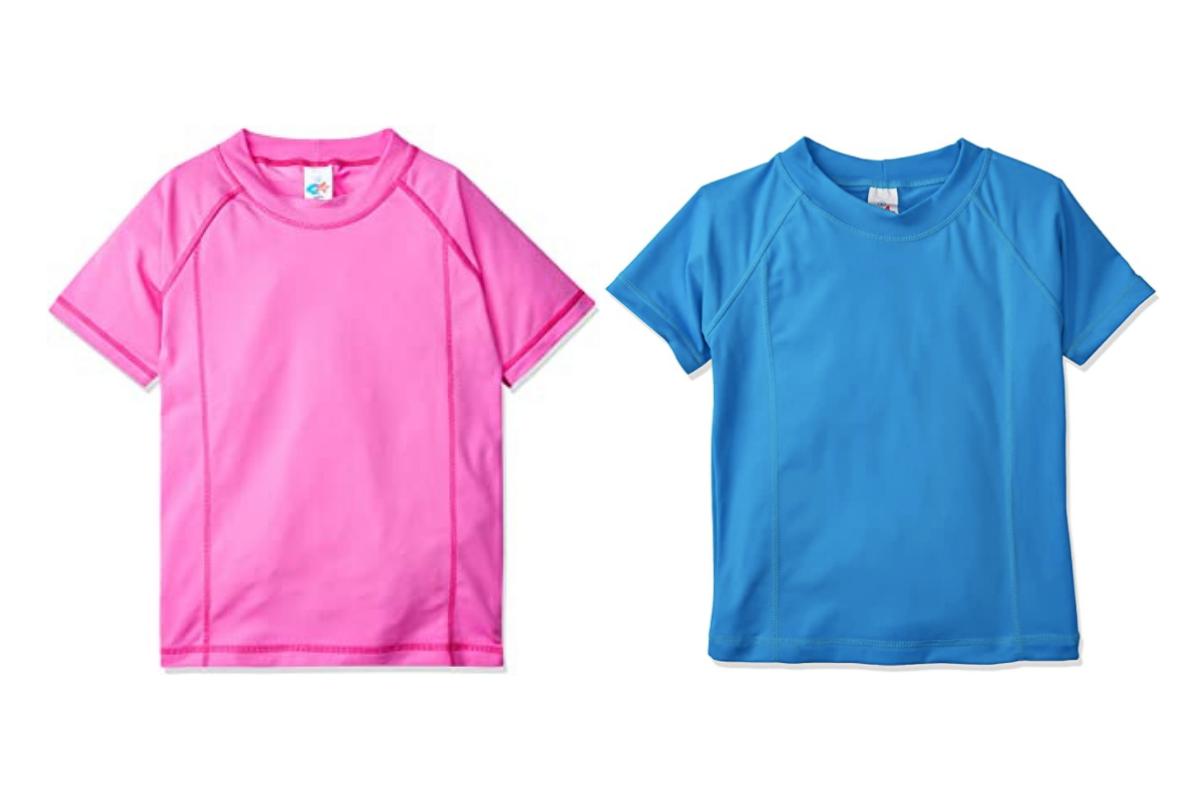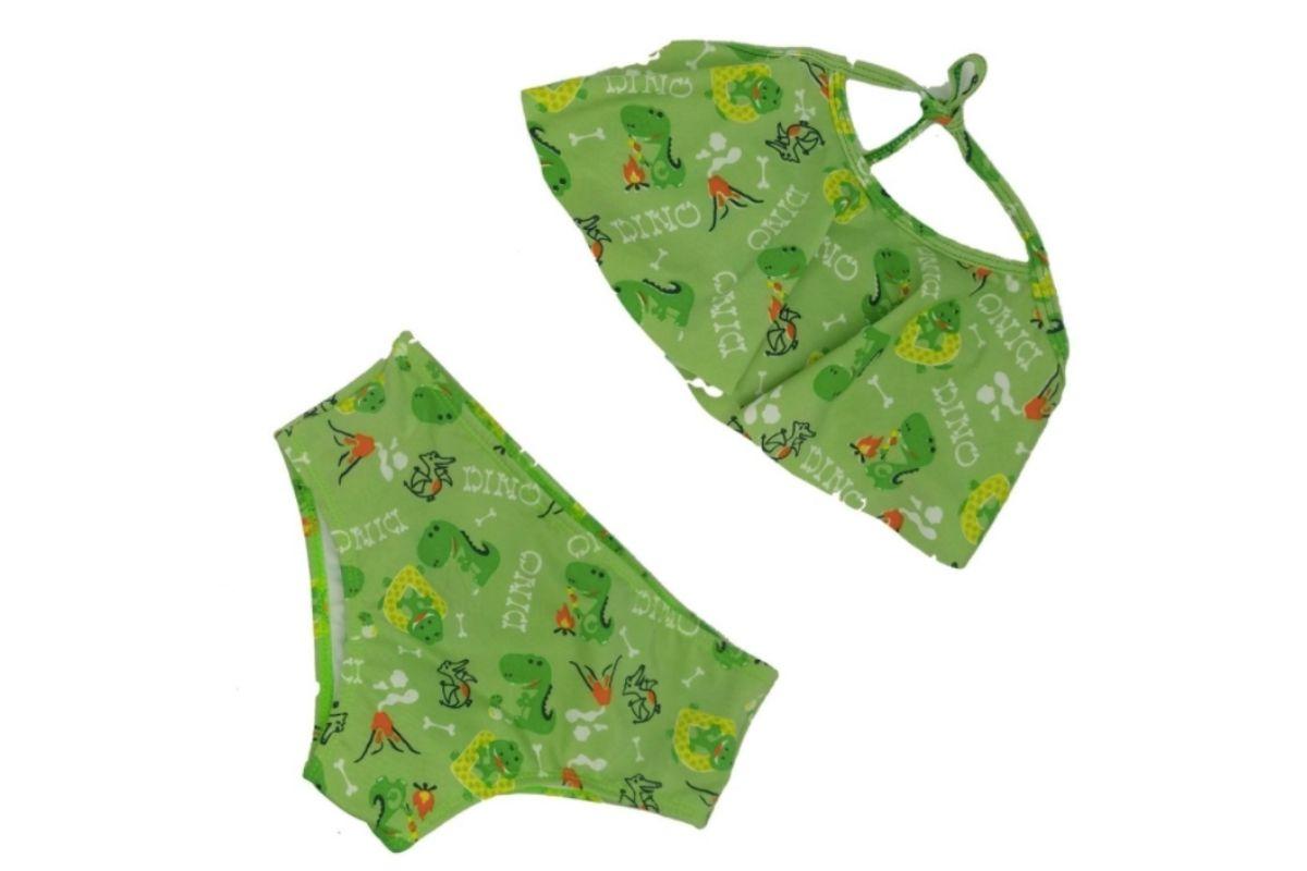 A camisa é feita com tecido de proteção UV, ideal para as crianças pequenas, que têm a pele mais sensível. A parte de baixo, tanto a calcinha, quanto a sunga, é forrada para maior conforto e higiene.