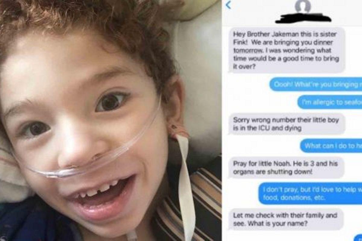 Foi então que Abby percebeu que tinha mandado mensagem para o número errado. A mulher contou porque havia se oferecido para entregar comida. Bill perguntou o que poderia fazer para ajudar e disse que não poderia orar, mas sim fazer doações.