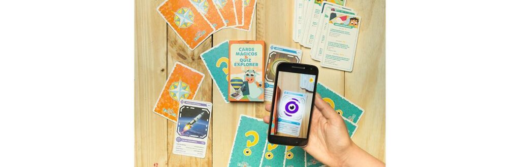 O nome PlayKids Explorer vem justamente para incentivar a criança a explorar. “No primeiro livro seu filho vai saber a história dos personagens e depois eles irão levá-lo para diversos lugares”, explica o CEO. A interação entre online e offline se dá nos Cards Mágicos que vêm junto com o kit. Funciona assim: a criança pega o Card e aponta o celular para ele com o aplicativo da PlayKids aberto, logo um vídeo é reproduzido trazendo curiosidades sobre o assunto que a carta está falando. Pode ser sobre um objeto, uma história ou um continente.
