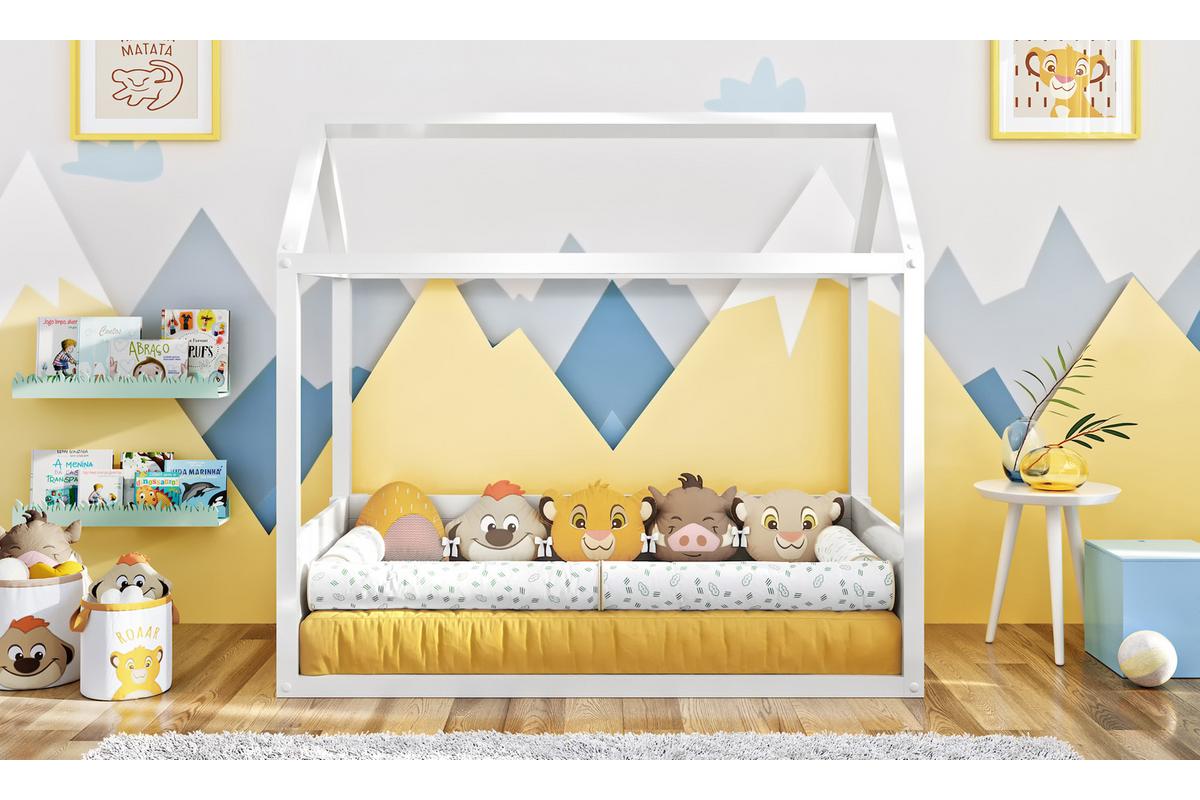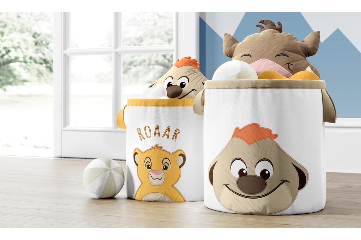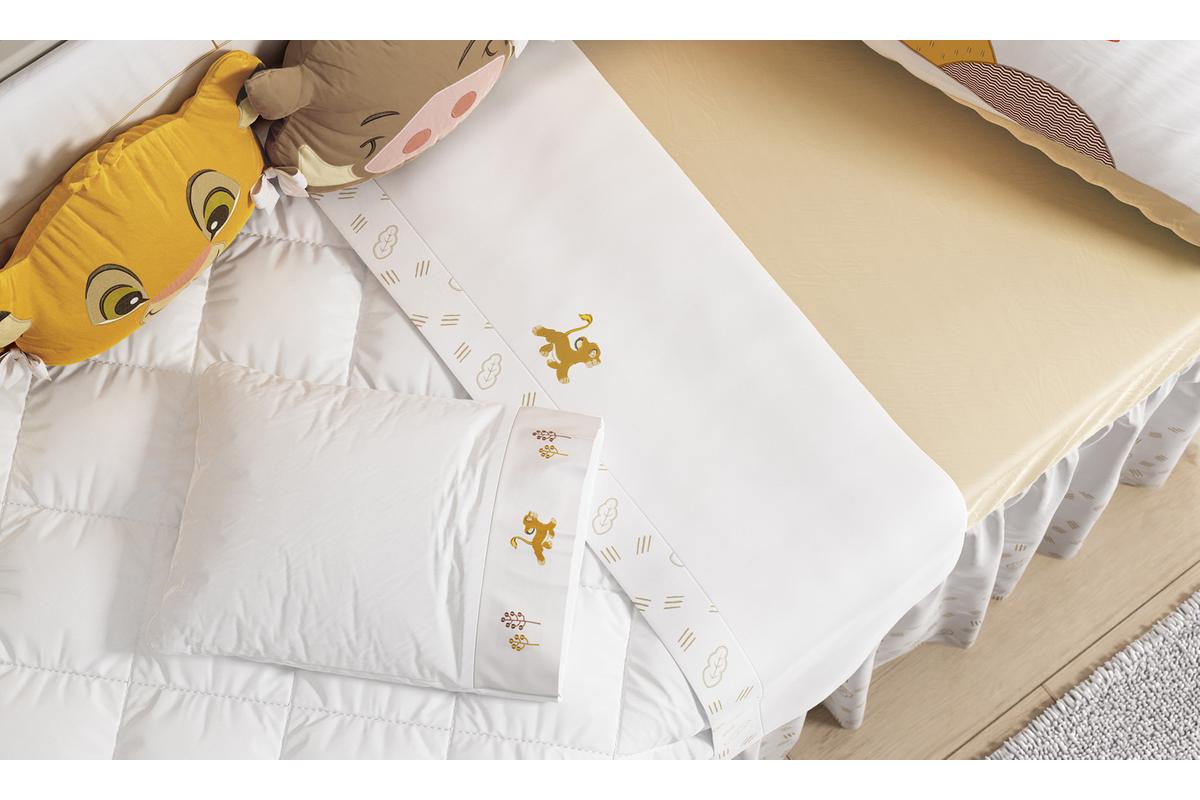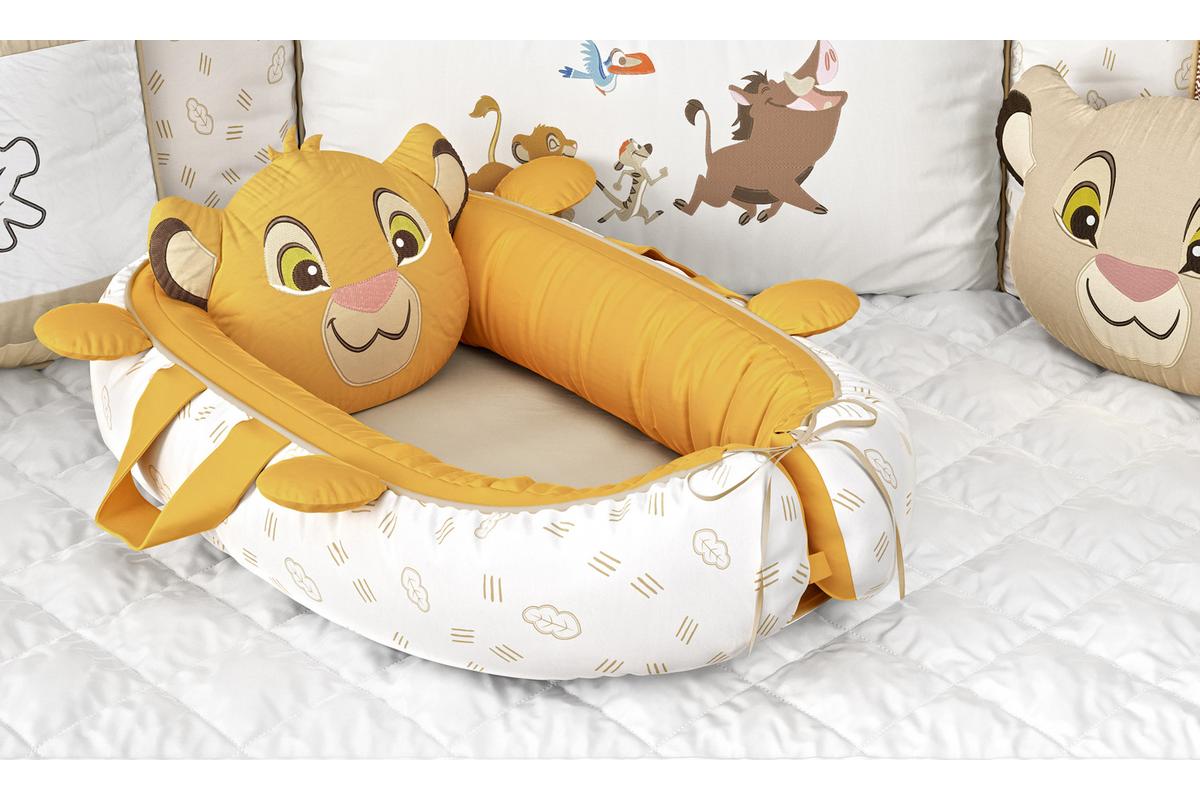 Amiguinhos O Rei Leão traz os personagens mais amados do clássico em peças apaixonantes, confeccionadas com tecido 100% algodão. Simba, Nala, Timão e Pumba estão representados com conceito original da marca, como almofadinhas protetoras inteiramente bordadas que aparecem no Kit Berço e Kit Montessoriano e podem ser usadas em camas infantis.