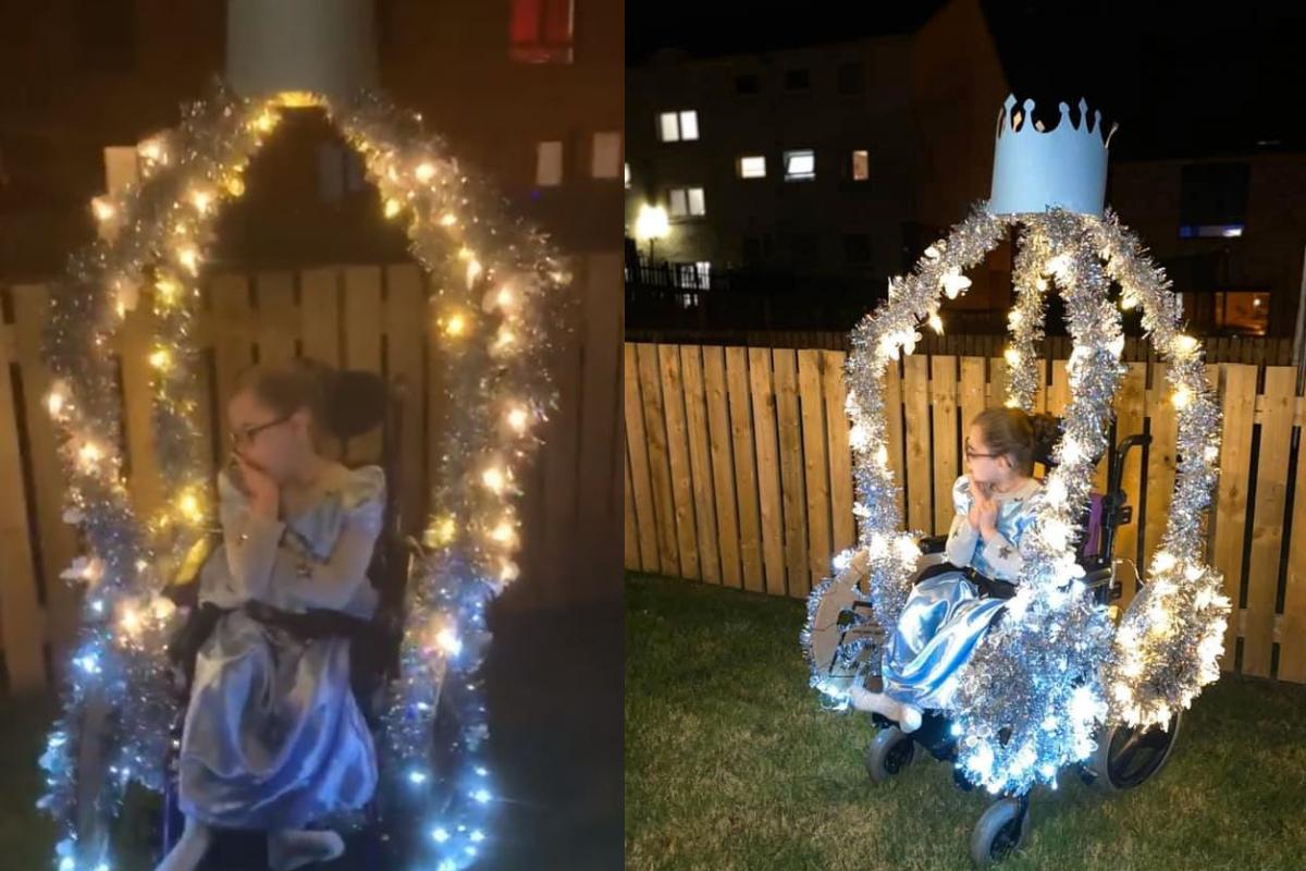 Josh Jaconelli ama o Halloween e já fez a fantasia da filha, a pequena Ava, de 6 anos, do jeito q ela pediu. Ele a presenteou com um vestido azul feito sob medida, um pacote de pisca-pisca e outros objetos de decoração, e transformou a filha cadeirante na Cinderela!