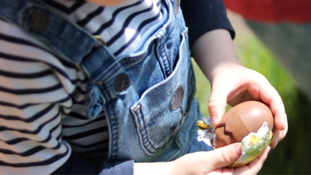 - Fazer uma caça aos ovos em casa, com pistas e surpresas divertidas para tirar o foco do chocolate;