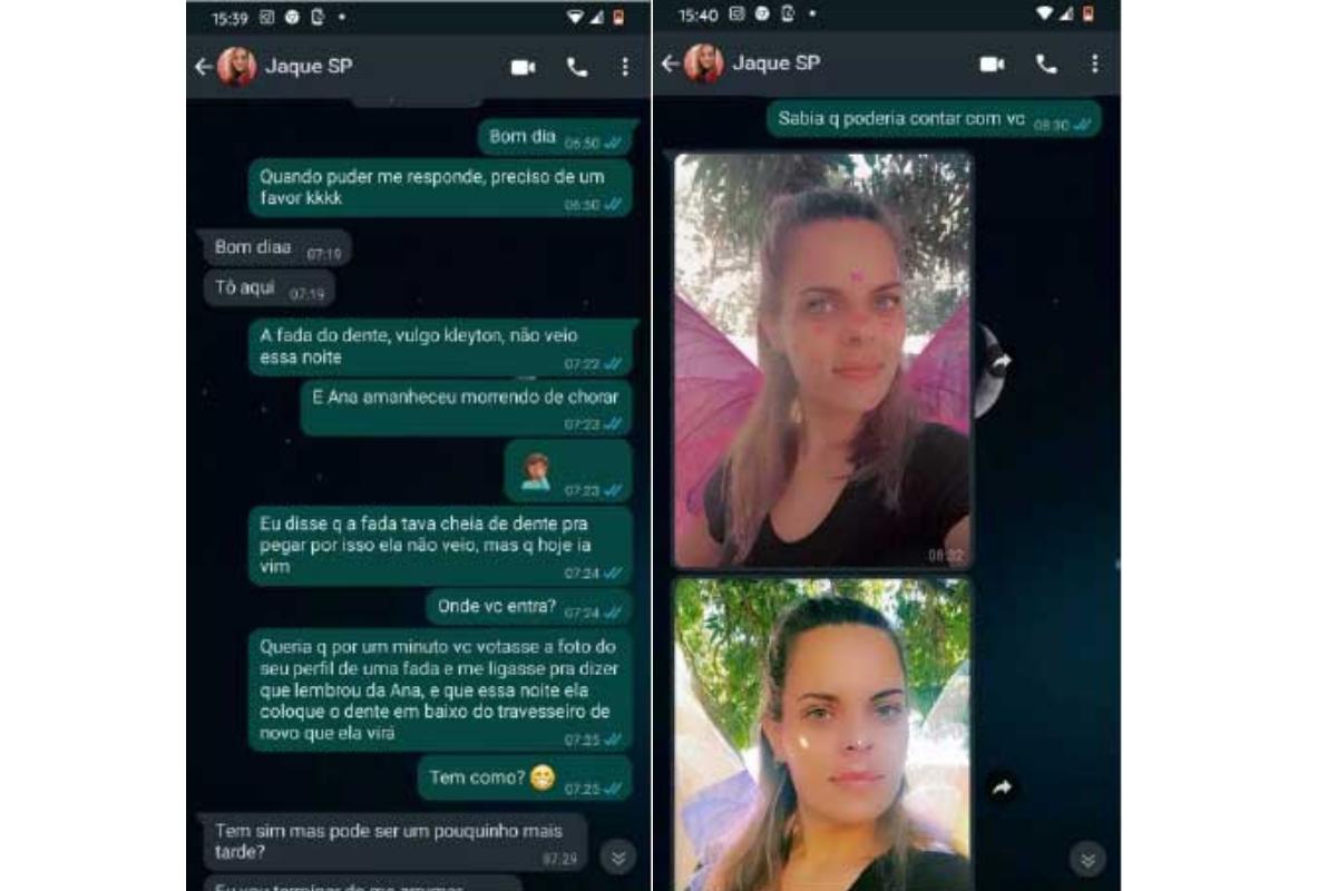 Raquel contou que quando a menina acordou e viu que não tinha uma moeda embaixo do travesseiro, começou a chorar, dizendo que a fada não havia passado lá. “Aí eu fiquei pensando: meu Deus, se eu tivesse uma fada, eu falaria pra essa fada falar que ela estava muito ocupada, que ela ia colocar de novo o dente. Na hora deu um instalo. Só tem uma pessoa que toparia tudo pra mim. E mandei mensagem pra Jaque”, conta a mãe.