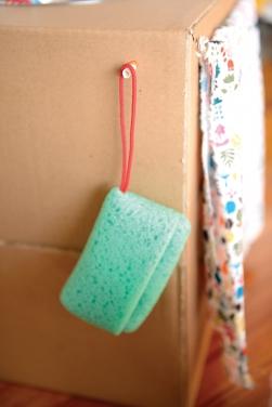 Encaixe, somente com pressão, um canudo colorido de festa. Ele será o cabidinho para sua esponja!