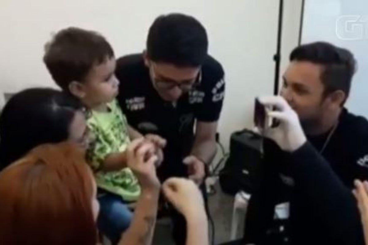 No vídeo, é possível ver os policiais dançando e cantando “Baby Shark” para deixar o garoto mais confortável. A mãe, Lorena Ramos Ferreira, de 35 anos, ficou admirada com a atitude e explicou que o filho tem restrição ao toque. Antes de sair de casa ela teve dúvidas se conseguiria que realizassem o registro. Para assistir ao vídeo, clique aqui.