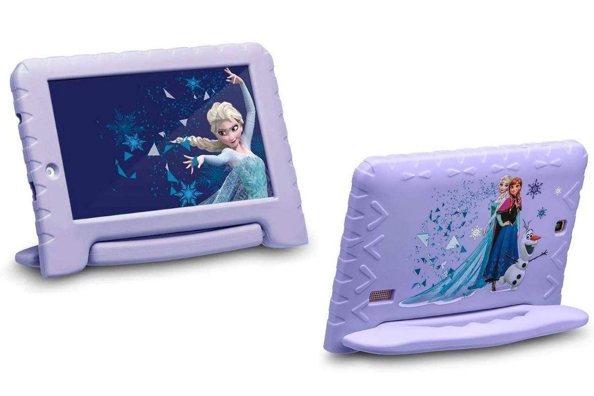 Os fãs de Frozen vão adorar ganhara esse tablet que tem o case com a estampa das personagens dos filmes da Disney. A capa protetora possui acabamento emborrachado resistente a impacto, assim se seu filho acabar derrubando, os riscos de quebrar diminuem. Também tem ajuste de ângulo, pra ficar melhor e mais fácil de utilizar. Outra coisa legal é que já vem com controle parental, o que garante a segurança digital da família. Clique AQUI e compre na Amazon.