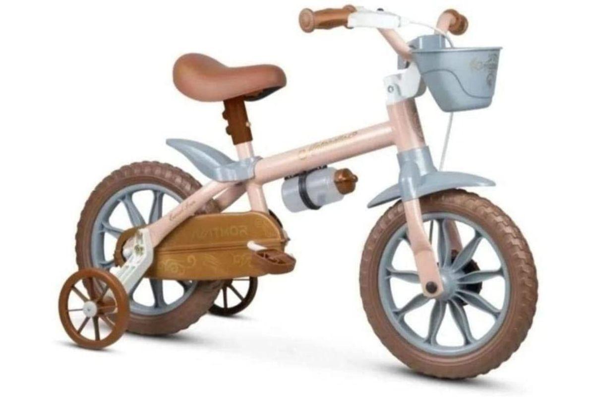 Esse modelo, da Nathor, feito com cores neutras é um charme só! Indicada para crianças a partir de 3 anos, tem rodinhas e aro 12. O peso máximo recomendado é de 12 kg e a altura máxima é entre 90cm e um metro. Possui quadro, garfo e guidão em aço carbono e também possui limitador de giro do guidão. Para comprar pela Amazon, é só clicar AQUI.