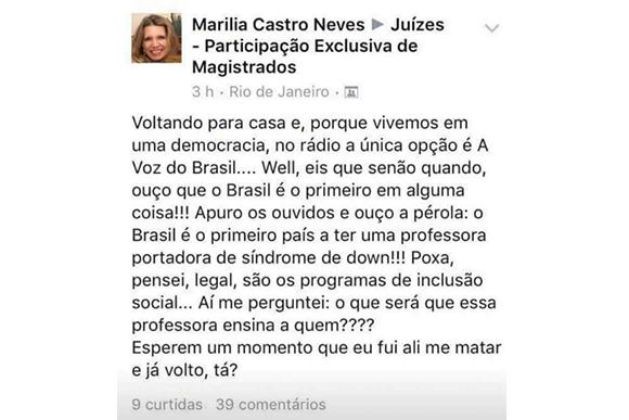 Infelizmente o preconceito de diversas naturezas ainda é muito comum em nosso país. O caso mais recente envolve Débora Seabra, filha de Margarida e José Robério, a primeira professora com Síndrome de Down do país, e a juíza Marília Castro Neves, que fez uma publicação debochando da profissional.