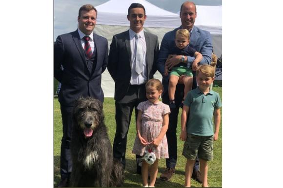 O tweet compartilhado pela conta The Army in London (exército de Londres) mostra uma foto do Príncipe William ao lado dos filhos George, Charlotte e Louis, além do cachorro que é mascote, Domhnall. A princesa Charlotte parecia não ter olhos para além do animal!
