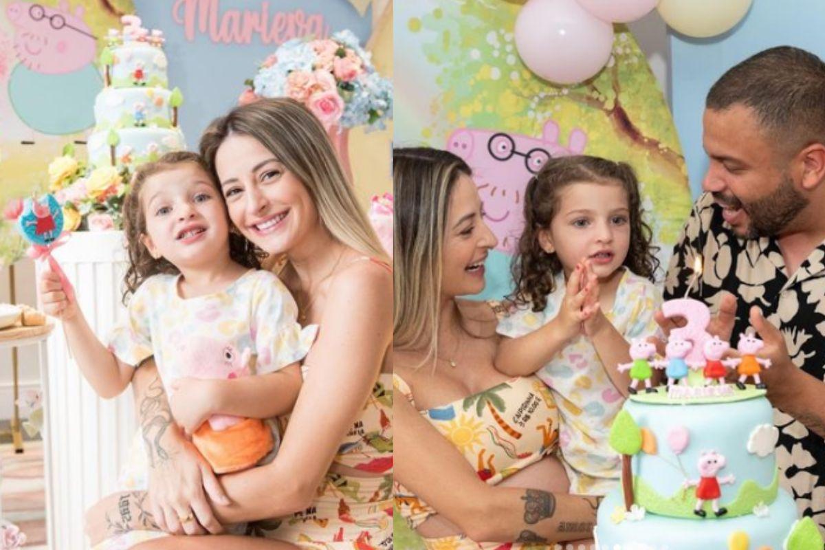 Tamy está grávida de seu segundo filho com Projota e terá um menino chamado Otto. Na rede social, ela publicou uma série de fotos dos melhores momentos da festa. A decoração do evento contou com bolos e doces decorados com o rosto de ‘Peppa Pig’. ‘’Três anos de Mariê’’, escreveu a mãe na legenda da publicação.