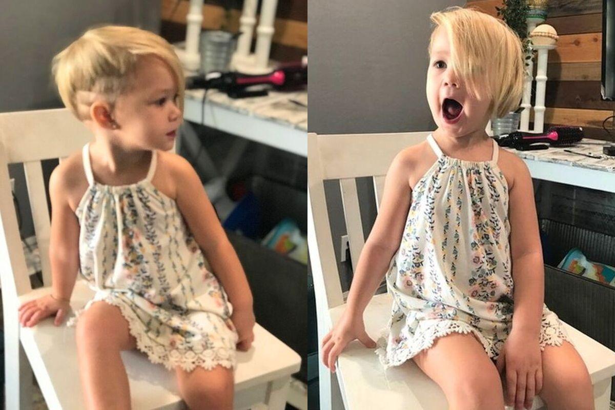 Breana Naylor e Michael, notaram que os filhos Colt, de três anos, e Kimber, de dois, estavam muito quietos e suspeitaram que estivessem aprontando algo. Quando chegaram no quarto das crianças, eles estavam escondidos dentro do guarda-roupa e os pais acharam que nada havia acontecido, mas quando viram 5 minutos depois, a menina estava cercada por várias mechas de cabelo no chão.