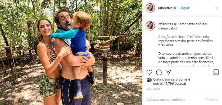 Rafa desabafou sobre como criar um filho que dê valor ao que tem (Foto: Reprodução / Instagram @rafabrites)