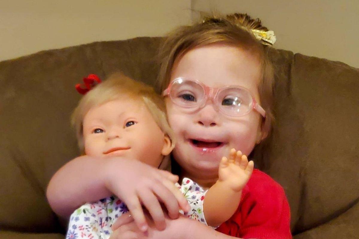 Apesar da indústria de brinquedos não oferecer muitas opções de bonecas que representem pessoas com Síndrome de Down, a mãe foi surpreendida ao encontrar uma boneca muito parecida com a filha! Linsday disse que não pensou duas vezes e comprou o brinquedo. Logo, ela percebeu que não poderia ter feito escolha melhor! Ao receber o presente, Ivy ficou simplesmente encantada com a nova ‘filha’, como se referia a boneca.