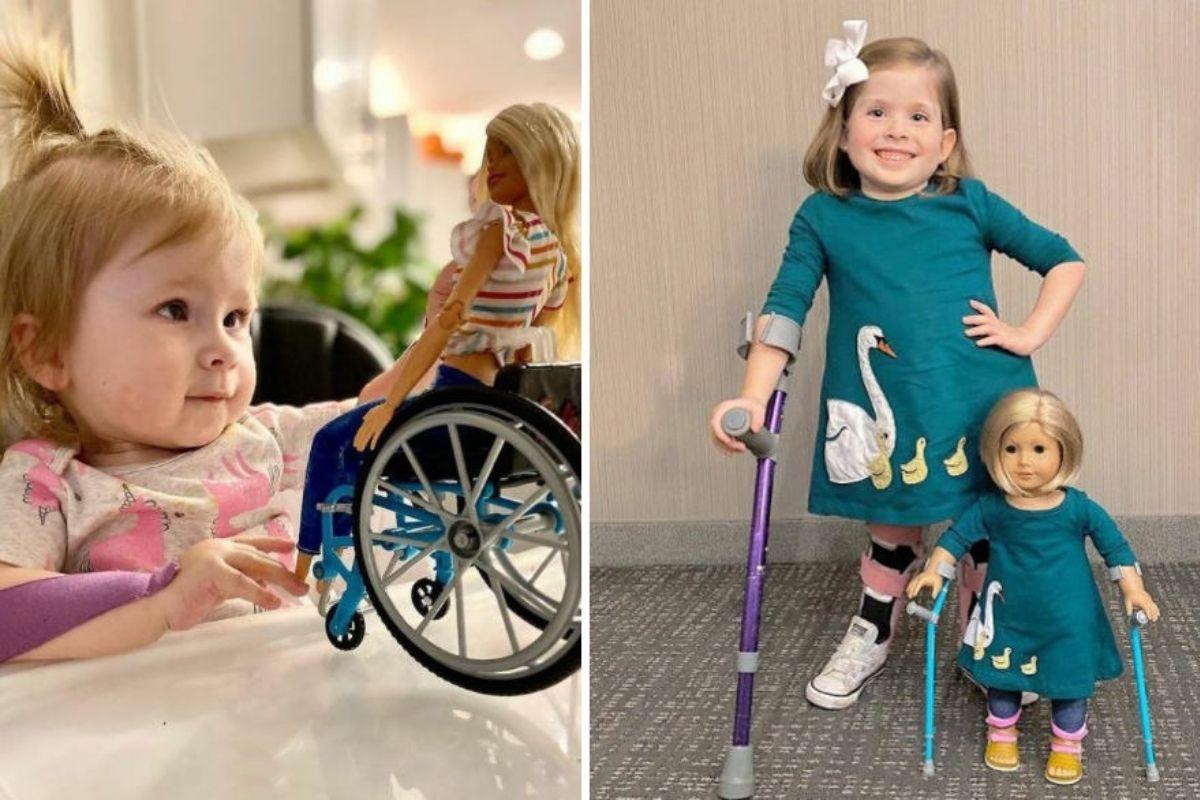 Lindsay aproveitou o post para compartilhar outras fotos de crianças com as bonecas parecidas com elas. Eliza, por exemplo, é uma das amigas de Ivy. Ela tem espinha bífida e ganhou uma boneca com muletas e botinhas ortopédicas. Enquanto, Stella agora tem uma Barbie que, assim como ela, usa cadeira de rodas.