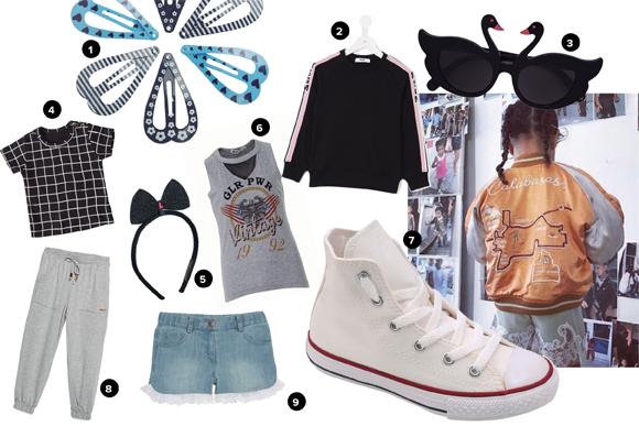 1. Marco Boni Tic Tac Lovely R$47,40 (marcoboni.com.br) 2. MSGM kids na Farfetch R$680 (farfetch.com) 3. Stella Mccartney kids na Farfetch R$870 (farfetch.com) 4. A Raposa e o Elefante Blusa xadrez manga curta R$ 68,00 (araposaeoelefante.com.br) 5. Lilica Ripilica R$69,00 (lilicaetigor.com) 6. Regata Infantil R$ 34,99 (passarela.com) 7. Tênis Infantil Converse R$139,90 (netshoes.com.br) 8. Calça Moletom Lilica Ripilica R$159,00 (netshoes.com.br) 9. Shorts Jeans – R$ 149,90 (chicco.com.br)