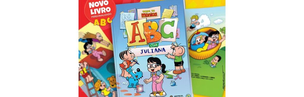 Além de poder fazer com que a criança participe da história, o novo livro personalizado da Turma da Mônica faz com que elas reconheçam as letras, a ordem alfabética e se familiarizem com as palavras. Na página com a letra “A”, por exemplo, as crianças vão interagir com o Anjinho e o Astronauta. Na que tem a letra “C”, vão protagonizar a história junto ao Cascão, o Chico Bento e o Cebolinha. Divertido, né?!