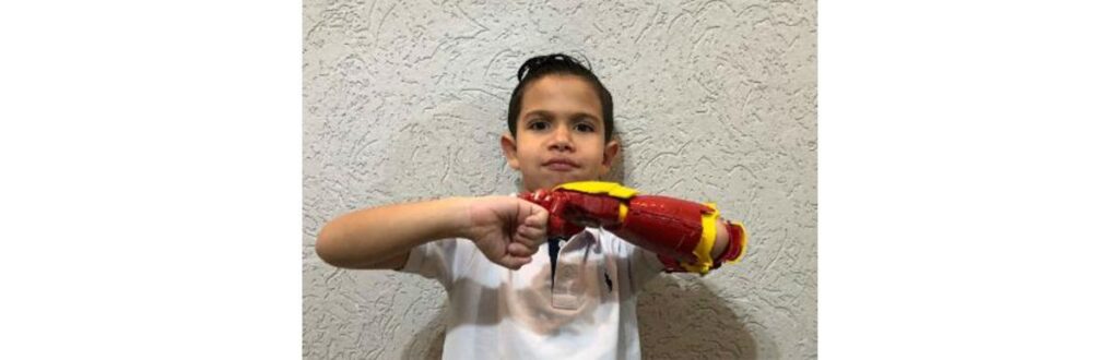 Miguel Ângelo, de apenas seis anos, nasceu com um problema congênito nas mãos, por conta de complicações na hora do parto. Ele perdeu uma parte do seu braço esquerdo. Essa história inspirou alguns cientistas da USP a criarem uma prótese de um dos personagens favoritos do menino: o Homem de Ferro.