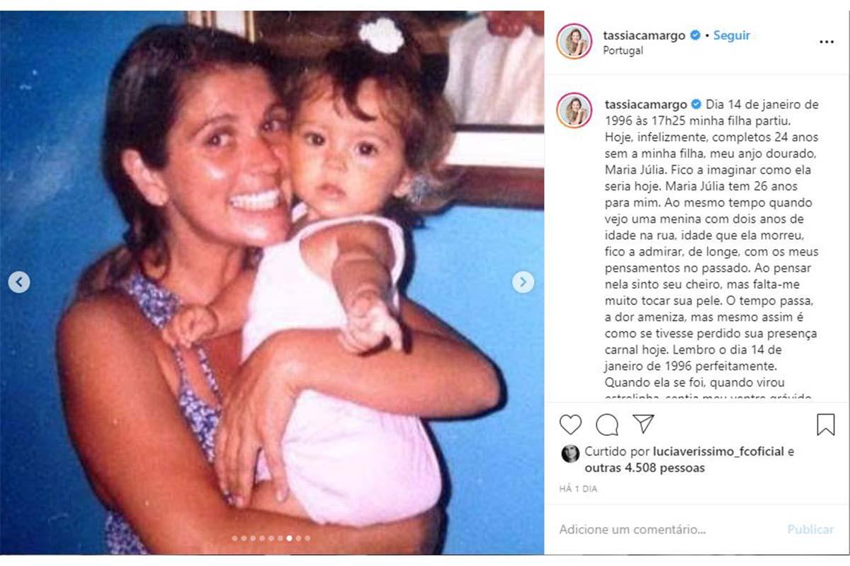 Tássia Camargo presta homenagem para a filha que perdeu no Instagram no dia que a menina completaria 24 anos (Foto: reprodução / Instagram / @tassiacamargo)