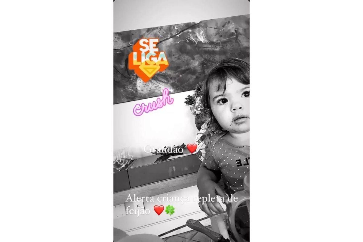 Após da postagem bem humorada, Tatá mostra a filha de pé com sujeira de feijão na boca. “Alerta, criança repleta de feijão”, diz a comediante.