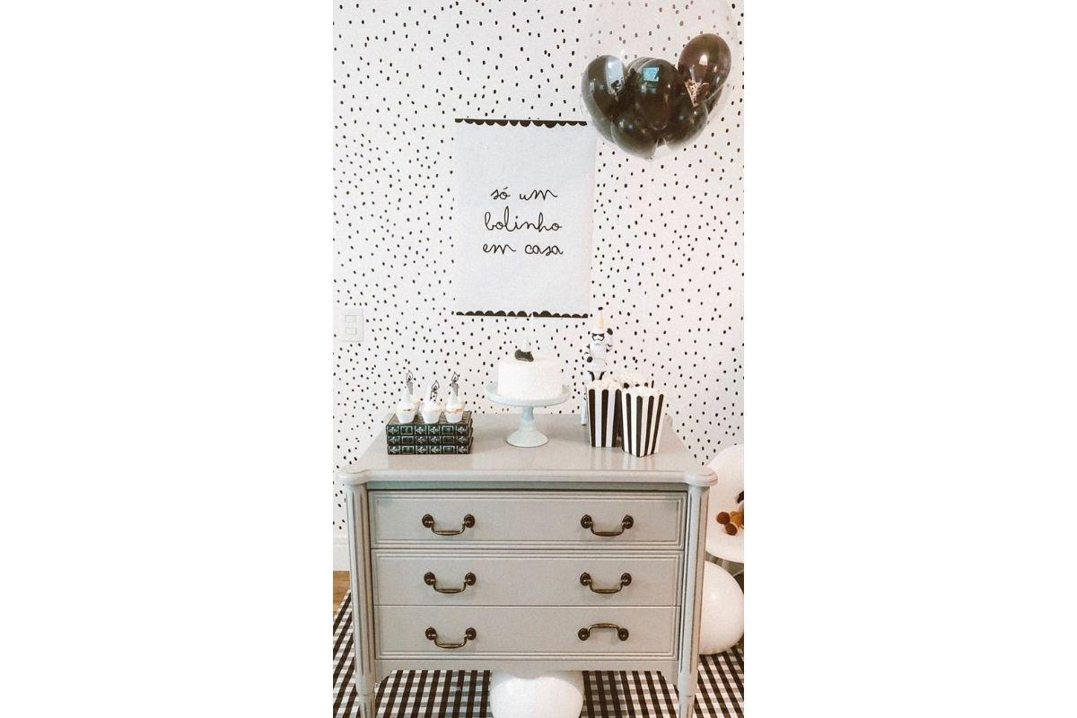 Praticidade é seu sobrenome? Essa é a referência perfeita para você criar o aniversário de 1 ano do seu filho de jeito simples, bonito e aconchegante – afinal, nem só de festão vivem os pais da criança completando o primeiro ano de vida, não é? O charme dessa festinha foi o fundo usado atrás da mesa do bolo e as bexigas pretas (olha essa cor mais uma vez trazendo beleza e minimalismo). A bandeirinha de “só um bolinho em casa” deixou tudo mais divertido e com propósito!
