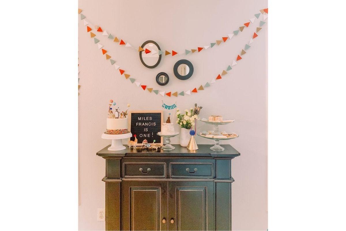 Dos criadores de “é só um bolinho em casa”, vem aí: a mão na massa em pessoa! Escolha um ambiente da sua casa para ser decoração para o aniversário de 1 ano do seu filho e comece a decorar com fotos do tipo polaroid em toda a parede em que ficará a mesa do bolo. Você também pode criar os chapeuzinhos de festa e caprichar na escolha do bolo – com poucos convidados ou só as pessoas que moram com você, essa data merece um doce lindo!