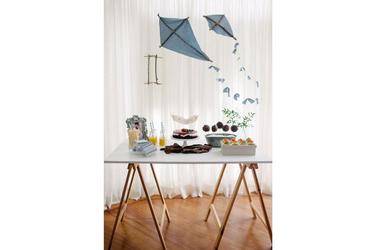 Sempre que pensamos em dar uma festa, a primeira coisa que vem à cabeça é o tema. Mas, isso não precisa ser uma regra. Você pode montar uma comemoração linda sem precisar definir exatamente qual é a temática da decoração. Uma solução simples para isso é escolher elementos que façam sentido para você e carreguem as sensações que você quer passar. No caso dessa referência, a pipa funciona como uma alusão à infância e leveza dessa época.