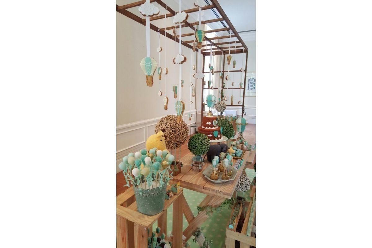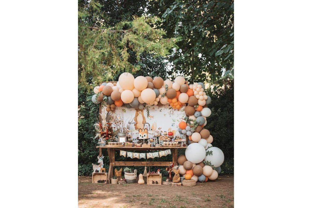 Olha os elementos naturais aparecendo aqui de novo! Caso você escolha um tema de aniversário de 1 ano com animais e florestas, aproveite e faça a comemoração do lado de fora de casa. Aqui, as bexigas em tons neutros ajudaram a criar o clima proposto pela decoração. Os animais de madeira, papel e até mesmo de pelúcia são muito bem-vindos para deixar a festa linda.