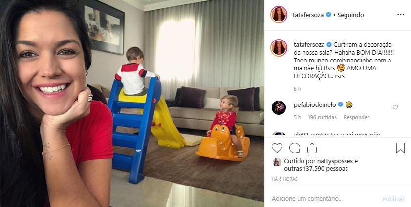 “Curtiram a decoração da nossa sala?”, brincou Thais na legenda da publicação.