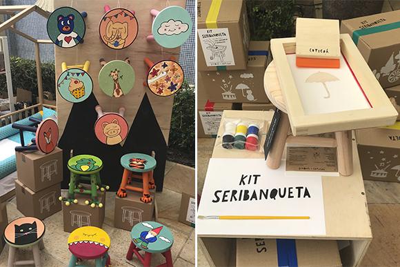 A “Ju Amorinha” produz banquetas para crianças personalizadas e únicas. São uma graça! Elas são feitas de madeira ecológica e pintadas, uma a uma, à mão. Cada arte tem uma tiragem limitada, deixando sua banqueta ainda mais exclusiva. Por se tratar de um produto feito à mão, podem haver pequenas alterações, mas nada que descaracterize o modelo que escolheu. Os bancos podem ter ou não o pezinho, que deixa a peça ainda mais charmosa. No evento, a marca também fez parceria com a “Coticoá” para produzir um kit de seribanqueta, ou seja, serigrafia na banqueta. Ela pode ser feita pelas próprias crianças, estimulando o gosto pela arte.